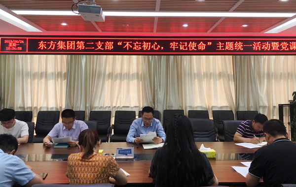 為深入貫徹落實黨的十九大精神和習近平新時代中國特色社會主義思想,扎實開展不忘初心、牢記使命主題教育活動,624日下午,東方集團第二黨支部繼續(xù)深入開展黨支部“專題教育黨課”工作。