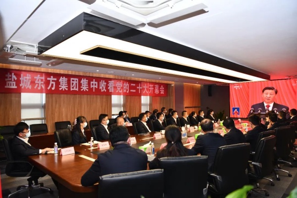 10月16日上午10點(diǎn),中國共產(chǎn)黨第二十次全國代表大會在北京人民大會堂開幕。鹽城東方集團(tuán)組織全體黨員、中層及以上人員等集中收看黨的二十大電視直播盛況,認(rèn)真聆聽習(xí)近平總書記所作的《高舉中國特色社會主義偉大旗幟,為全面建設(shè)社會主義現(xiàn)代化國家而團(tuán)結(jié)奮斗》的工作報告。