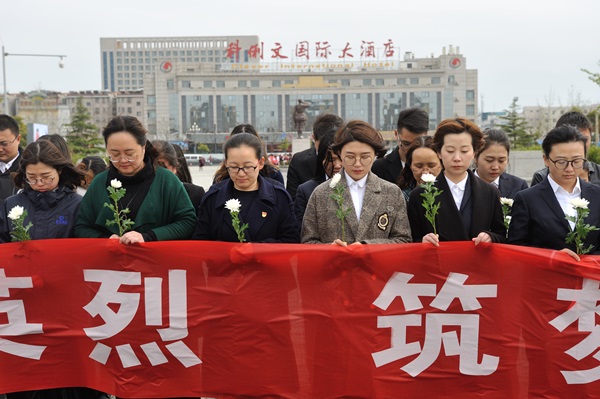 集團(tuán)員工們向革命烈士默哀三分鐘,表達(dá)對(duì)革命先烈的緬懷之情和敬仰之意。