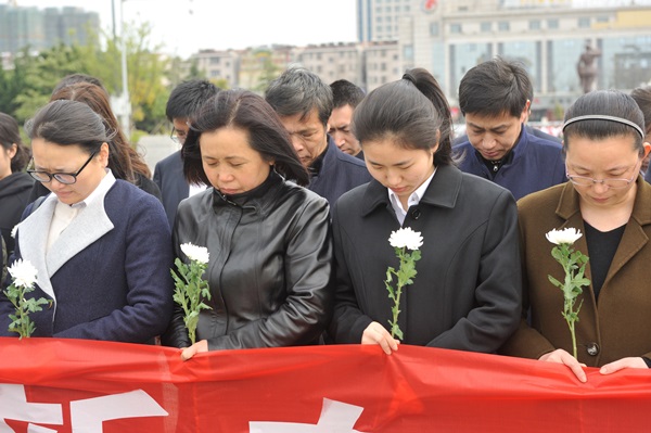 圖為集團(tuán)員工們向革命烈士默哀三分鐘,表達(dá)對(duì)革命先烈的緬懷和敬仰之意。