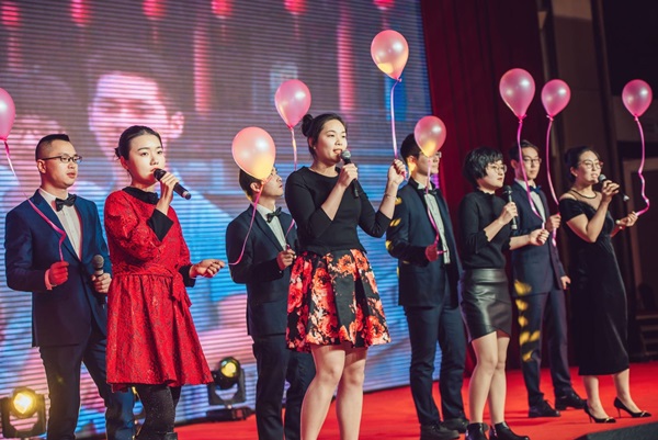 燕舞東方(上海)公司的小合唱《告白氣球》讓臺上臺下“浪漫滿屋”。
