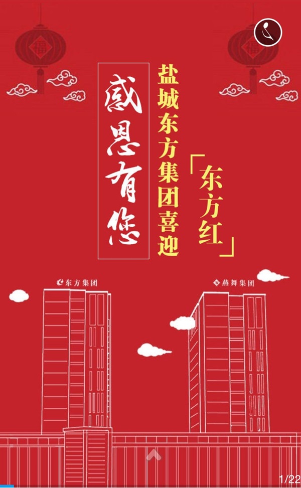 聯(lián)歡會最后,《感恩有你 鹽城東方喜迎“東方紅”》的H5輕應(yīng)用以其新穎的表現(xiàn)方式、美好的新年展望、熱忱的新年祝福,讓東方員工倍覺親切、深受鼓舞,紛紛在朋友圈熱情轉(zhuǎn)發(fā)。
