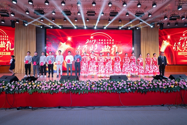 在晚會上,揭曉了2019迎新春聯(lián)歡會10個最受觀眾喜愛的節(jié)目,經過廣大職工的投票,最終最受觀眾喜愛的歌舞類節(jié)目開場舞《抖音串燒》、大合唱《走向復興》、獨唱《母親》、合唱《明天會更好》,最受觀眾喜愛的語言類節(jié)目《鹽城東方集團第二屆吐槽大會》《再別康橋》、最受觀眾喜愛的綜合類節(jié)目《軍體拳》,最具影響力的節(jié)目《新年快樂》,最具創(chuàng)作力的節(jié)目《資產管理唱大戲,群策群力譜新篇》,最具舞臺表現(xiàn)力的節(jié)目《希望》,集團領導分別為獲獎節(jié)目頒獎。