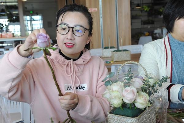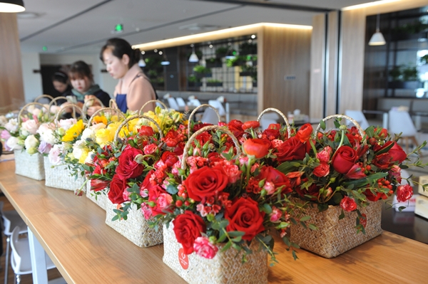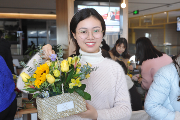 活動(dòng)現(xiàn)場(chǎng)花香四溢,女員工們手捧鮮花,仔細(xì)地裝點(diǎn)起自己的花束,表情專注,鮮花被一雙雙靈巧的手精心修剪后放入花籃內(nèi),呈現(xiàn)出最動(dòng)人的姿態(tài),創(chuàng)作出了一個(gè)個(gè)造型優(yōu)美、花團(tuán)錦簇、色彩活潑、穿插和諧的插花作品,現(xiàn)場(chǎng)氣氛溫馨浪漫,歡聲笑語(yǔ)響成一片。