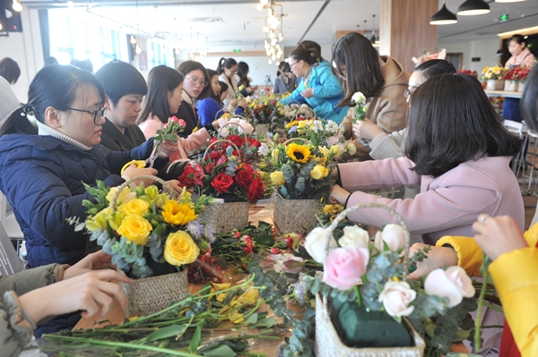 鮮花贈(zèng)女神,聞香識(shí)佳人。3月8日上午,為慶祝“三八”國(guó)際婦女節(jié)的到來(lái),鹽城東方集團(tuán)婦聯(lián)組織開(kāi)展“詩(shī)情花藝 幸福東方——女神節(jié)插花沙龍”活動(dòng),來(lái)自集團(tuán)及各子公司70名女員工暫時(shí)放下了繁忙的工作,感受花藝魅力,體會(huì)自然芬芳。