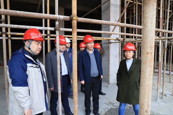 檢查組檢查北師大鹽城附校初中、高中部禮堂施工安全