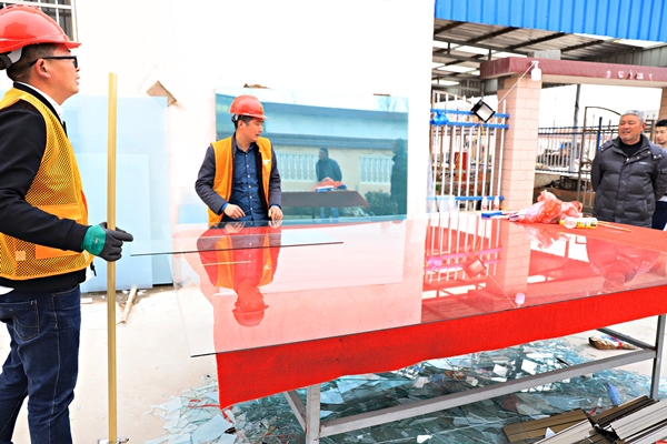 325日清晨,集團(tuán)副總經(jīng)理王建旭帶領(lǐng)20人的援建隊(duì)伍趕赴救援現(xiàn)場(chǎng),對(duì)新光村受損房屋進(jìn)行勘察統(tǒng)計(jì)并科學(xué)制定維修方案,根據(jù)需要將市場(chǎng)上緊缺的玻璃、鋁型材訂購(gòu)計(jì)劃發(fā)往鹽城各采購(gòu)點(diǎn)。根據(jù)要求,計(jì)劃一周內(nèi)將門(mén)窗破損等輕微受損的房屋全部修復(fù)到位。