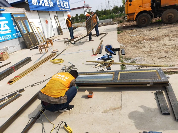 為加快推進(jìn)受損房屋修繕進(jìn)度,讓群眾滿意放心,施工組組織協(xié)調(diào)指導(dǎo),督促推進(jìn),確保將安全、質(zhì)量、進(jìn)度落實(shí)到每個(gè)環(huán)節(jié)。前方剛測(cè)量完,后方便開(kāi)始對(duì)施工材料進(jìn)行切割打孔,運(yùn)輸隊(duì)不間斷將材料運(yùn)送到援建現(xiàn)場(chǎng),分配到施工組后,經(jīng)過(guò)壓條、裝鋁材等工序,再送到現(xiàn)場(chǎng)統(tǒng)一進(jìn)行安裝。