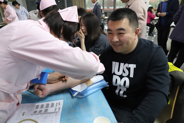 獻血現(xiàn)場,獻血的職工們在醫(yī)務人員的指導下,認真地填寫獻血登記表、測量血壓、采血化驗,順利通過之后進行采血。獻血隊伍中有的已是獻血多年的志愿者,有的是初次上陣的“新兵”。雖然緊張到全程眼睛緊閉不敢看針頭,但拿到屬于自己的無償獻血證后,臉上綻放出了驕傲的笑容。“無償獻血是助人為樂的好事,是‘我為人人,人人為我’的社會共濟互助行為,我會一直堅持下去。”剛剛獻了200毫升血的張奇說道。同樣的,無償獻血“老將”吳霞,已是第7次參加無償獻血活動,個人累計獻血靚已達1500毫升。他們都把參加無償獻血,看作是既有利于身心健康又能支持社會公益的好事來做。