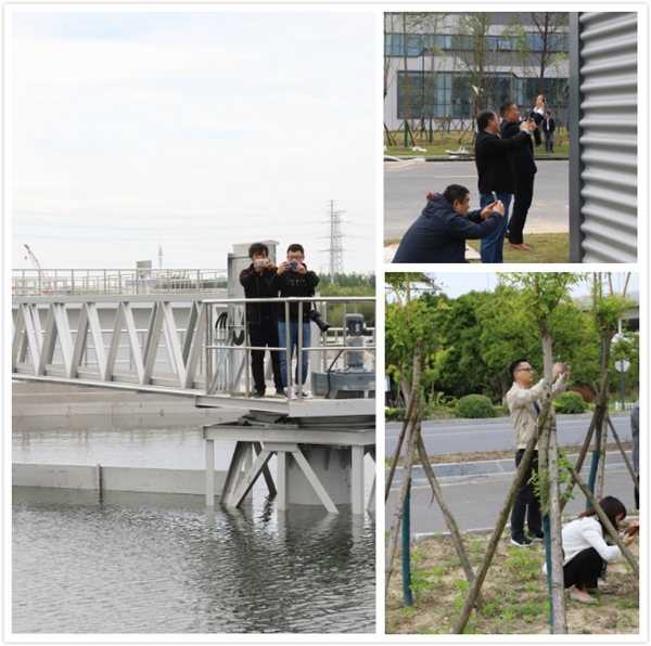 在采風創(chuàng)作過程中,沙龍成員們相繼前往悅欣花園、東方機械電子廠房、污水處理廠和“一片林”等集團項目現場,拍攝不同的春光美景。采風期間,老師從拍攝方法、選景角度等方面進行了現場指導和示范。員工們或佇立、或半蹲、或側坐、或趴下……抬起相機或手機尋找最佳角度、變換最好焦段、力求最美構圖、苦思最新創(chuàng)意,互相交流拍攝心得,不時向老師取經,積極向專業(yè)攝影靠近。最終定格每一個精彩畫面,記錄下經開區(qū)一個個美麗的瞬間。