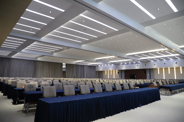 場館提升改造過程中,項目管理人員與現(xiàn)場50多名工人日夜忙碌、并肩作戰(zhàn),開足馬力推進會議中心燈光亮化和LED顯示屏安裝工程。一手搶抓工期,科學(xué)制定施工方案,對施工單位明確獎懲條款,在充分利用時間的同時合理套搭施工,提高施工效率;一手與施工單位簽訂安全生產(chǎn)責(zé)任狀,定時定點巡查安全質(zhì)量隱患,確保安全“零事故”和質(zhì)量“高品質(zhì)”。截止目前,項目現(xiàn)場安裝完成3塊LED顯示屏,二樓會議大廳頂部噴淋改造,舞臺燈具槽、吊頂及會場燈具安裝均已完成,中心休息區(qū)及貴賓室升級等工程已順利完工。為做好全館保潔、室外的環(huán)境衛(wèi)生等工作,東方物業(yè)自4月30日接到通知后,即刻行動,清洗噴泉池及室外廣場,修理噴水泵及廣場石材等,并配合做好改造后的全館保潔、零星維修、現(xiàn)場安保、音響及大屏調(diào)試等工作。