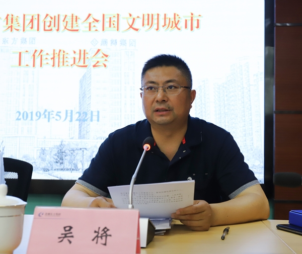為及時(shí)傳達(dá)學(xué)習(xí)貫徹區(qū)創(chuàng)建全國(guó)文明城市推進(jìn)會(huì)會(huì)議精神,522日下午,鹽城東方集團(tuán)召開(kāi)鹽城東方集團(tuán)創(chuàng)建全國(guó)文明城市工作推進(jìn)會(huì),集團(tuán)黨委書(shū)記、董事長(zhǎng)張振國(guó)就創(chuàng)文工作提出明確要求,集團(tuán)黨委委員、副總經(jīng)理吳將主持會(huì)議。集團(tuán)各部門(mén)、子公司、各項(xiàng)目負(fù)責(zé)人參加會(huì)議。