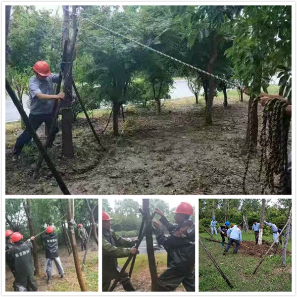 在上級領(lǐng)導的統(tǒng)籌安排下,東方園林公司對“一片林”及經(jīng)開區(qū)內(nèi)的綠化養(yǎng)護路段分四大巡查區(qū)域,對區(qū)域內(nèi)的樹木進行加固。各部門嚴格執(zhí)行汛期24小時專人值班制度,進行不間斷巡查,巡查期間及時排除道路險情4起,對倒伏樹木進行扶正,已累計扶正樹木500多棵。