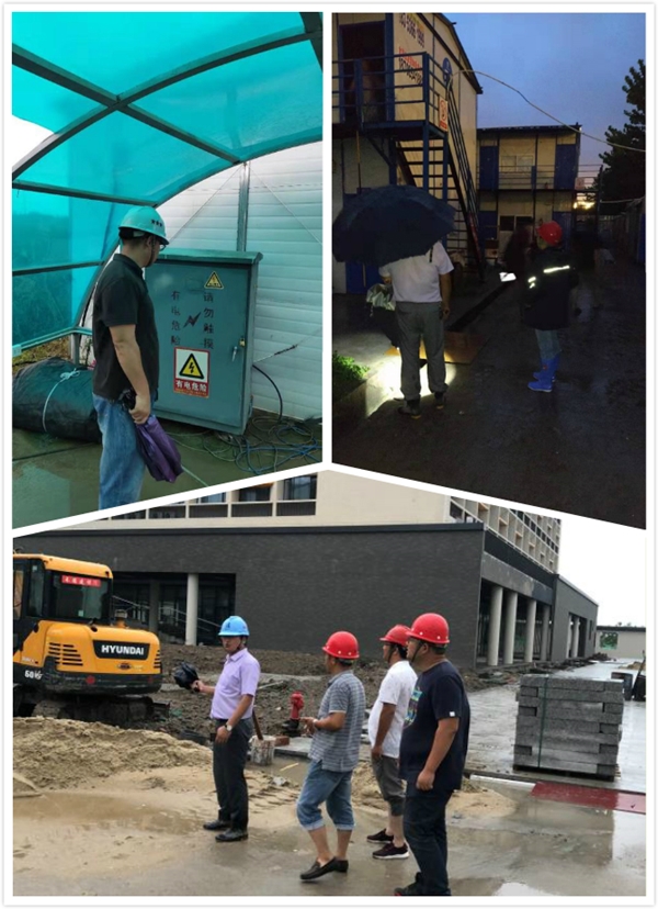 臺風來臨前,東方集團所屬工程項目2臺塔吊全部放開回旋裝置,136臺吊籃全部停到底層,168間活動板房全部予以加固,所有大型設(shè)備全部斷電。按照防汛值日所有建設(shè)項目均有人員連夜值班巡查,10日夜間集團工程管理部分別對北師大初高中、東方之洲、悅欣花園、未來科技城4個項目的施工現(xiàn)場防臺風落實工作進行了突擊檢查,各工地項目部大門關(guān)閉,活動房內(nèi)工人全部撤離,施工現(xiàn)場電源切斷,工程條線各建設(shè)項目值班人員均在崗在位。