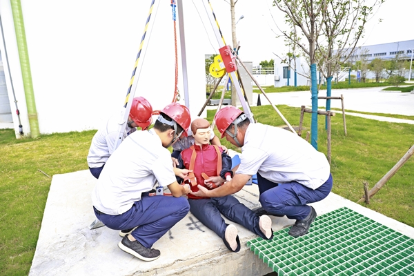 演練過程中,集團(tuán)工程部安全辦李克海進(jìn)行指導(dǎo)。水務(wù)公司副總經(jīng)理沈效偉向員工普及了有限空間作業(yè)應(yīng)急救援知識,提高了員工的風(fēng)險防范意識和自救互救能力,也促使廣大員工加強(qiáng)有效的防范措施,努力把事故隱患消滅在萌芽狀態(tài)。