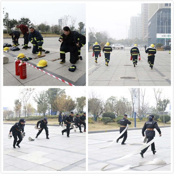 競賽最精彩的環(huán)節(jié)要數(shù)秩序維護(hù)競賽中的實際技能操作部分,通過消防服穿戴、水帶拋接比試出用時最少、穿戴最標(biāo)準(zhǔn)的選手。選手們不僅規(guī)范地穿好消防服、消防靴、消防頭盔,還將消防腰帶頭收進(jìn)扣環(huán),扣好上衣前襟搭扣,水槍在腰上掛好,并完成雙人三盤水帶水槍接跑,來自東方科技城隊的兩名的安保人員在比賽中脫穎而出,分別用時47251655。
