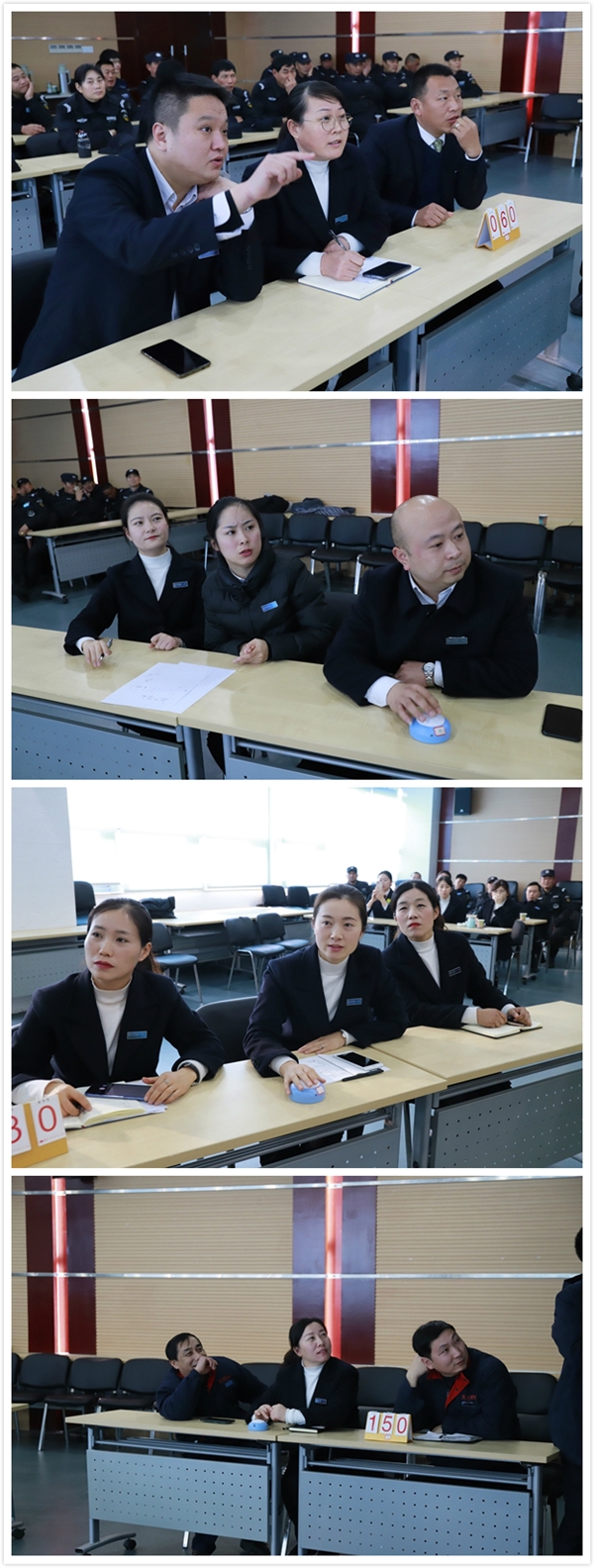 此次技能比武,采用團(tuán)體賽制,共有東方科技城隊、韓資園隊、新能源隊、綜保區(qū)隊、康欣花園隊參賽。比武共設(shè)知識競答、體能競賽、電工職業(yè)技能競賽、秩序維護(hù)競賽、客服職業(yè)技能競賽5個項目。參賽員工各顯其能,勇爭第一。