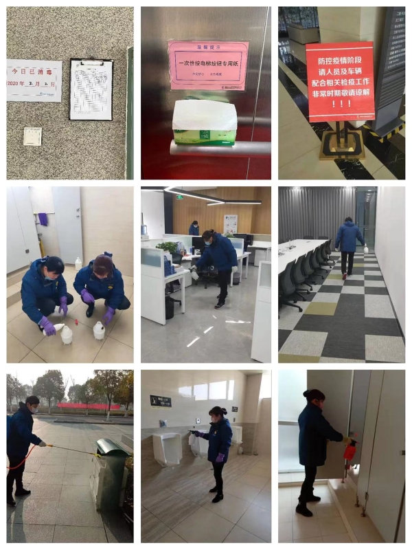東方物業(yè)各物管中心每日進行全園區(qū)全覆蓋的消殺,對于電梯轎廂、電梯按鍵、垃圾桶、地庫等重點地方進行重點消殺,努力保障業(yè)主的健康;安排門衛(wèi)把好“第一道關”,對進出人員嚴格檢查,做好登記,為業(yè)主測試體溫;在各個項目部顯眼處懸掛橫幅、朋友圈推送、單元提示欄張貼防疫宣傳標語等各種方式方法提醒業(yè)主關注疫情,防備疫情。