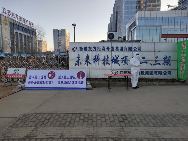 未來科技城項目部周密籌劃、精心準備,嚴格按照《鹽城經濟技術開發(fā)區(qū)建設工程節(jié)后復(開)工工作方案》《關于開展2020年春節(jié)后建設工程復(開)工安全生產與疫情防控驗收工作的通知》和《鹽城東方集團2020年建設工程復工與疫情防控工作方案》等文件規(guī)定復工標準進行準備,切實把防控工作作為頭等大事,認真抓好復工防控工作。
