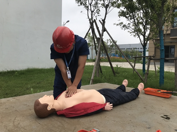 演練情景模擬時,該公司員工按正常審批流程進入進水流量計井作業(yè),因硫化氫中毒作業(yè)人員昏倒在井內,現場作業(yè)組將事故情況立即上報。現場總指揮王軍立即啟動預案,同時召集救援組趕赴現場進行搶救,地面救援組安置好救援三腳架并將救援繩放入井內,下井救援人員王權權佩戴正壓式空氣呼吸器等防護用品進入井內,給“受傷人員”系好救援繩并拉出井外,由地面救援組張成杰對傷者進行了心肺復蘇。經過半個小時緊張有序的演練,傷員得到有效救治,事故得到有效處置。