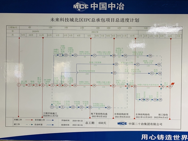 10月份樁機(jī)進(jìn)場組裝、10月底完成施工報(bào)審、115日取得施工許可證、116日樁基工程正式施工……未來科技城北區(qū)項(xiàng)目始終處于緊鑼密鼓、一著不讓的高效率施工節(jié)奏,這歸功于建設(shè)方和總承包單位高瞻遠(yuǎn)矚、提前謀劃,在工程尚未全面啟動(dòng)前就科學(xué)制定了《未來科技城北區(qū)EPC總承包項(xiàng)目總進(jìn)度計(jì)劃表》,明確總工期為650天,并將項(xiàng)目建設(shè)目標(biāo)分解到季、進(jìn)度安排到月、措施細(xì)化到周到天;隨著工程建設(shè)不斷深入,還將針對影響施工進(jìn)度的痛點(diǎn)和難點(diǎn)集中研討,拿出優(yōu)化方案并適時(shí)調(diào)整施工方案和進(jìn)度計(jì)劃。