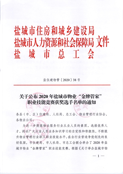 日前,鹽城市住建局、市人社局、市總工會(huì)聯(lián)合發(fā)布《2020年鹽城市物業(yè)“金牌管家”職業(yè)技能競(jìng)賽獲獎(jiǎng)選手名單的通知》,鹽城市東方物業(yè)管理有限公司3名選手榜上有名。其中,東方物業(yè)副總經(jīng)理左其杭、東方物業(yè)工程部設(shè)備維護(hù)員管文超兩人均獲得“鹽城市技術(shù)能手”“鹽城市五一創(chuàng)新能手”稱號(hào),東方物業(yè)工程部工程維修管理員顏錢獲得“鹽城市五一創(chuàng)新能手”稱號(hào)。