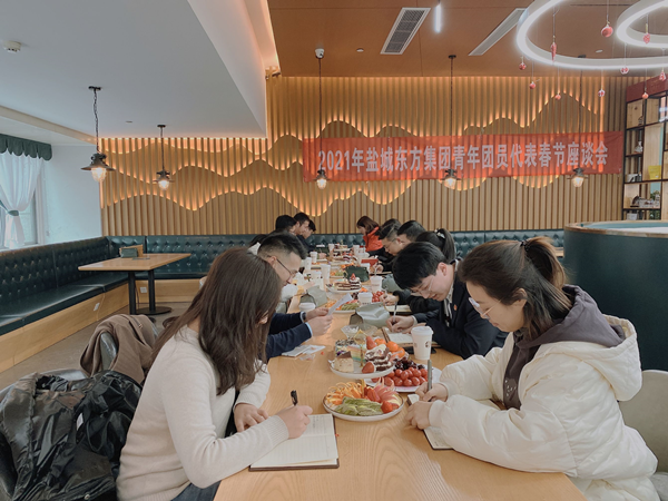27日,東方集團(tuán)團(tuán)委在星韻咖啡會展店召開青年團(tuán)員代表春節(jié)座談會。15名團(tuán)員青年代表參加座談。