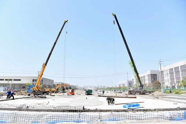 在步鳳陽光水岸項目現(xiàn)場,兩臺靜壓式樁機正在有序作業(yè);德喜大橋施工現(xiàn)場只見工人們正忙碌著對通榆河兩岸主墩深基坑內(nèi)進(jìn)行鋼筋綁扎工序作業(yè);贛江路地下通道及改造工程,工人們正在進(jìn)行贛江路通道臺背碎石回填和綠化帶栽植施工;尚德商務(wù)樓土方車輛正在進(jìn)行有序出土作業(yè),門口工人師傅對著進(jìn)出施工車輛進(jìn)行認(rèn)真沖洗;北師大初高中新建宿舍樓和未來科技城北區(qū)施工車輛正在有序出土,各項目所到之處,施工現(xiàn)場一片繁忙場景,施工節(jié)奏都在有條不紊地進(jìn)行……