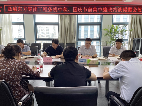 9月13日,鹽城東方集團(tuán)工程條線在1115會議室組織召開中秋、國慶節(jié)前廉政約談提醒會議。集團(tuán)黨委委員、副總經(jīng)理王成林主持會議并對工程條線人員進(jìn)行節(jié)前集中廉政約談提醒。集團(tuán)黨委委員、紀(jì)委書記華小軍就工程條線人員廉潔過節(jié)提具體要求。集團(tuán)工程部、招標(biāo)部、審計部、重點(diǎn)工程負(fù)責(zé)人及有關(guān)人員等20余人參加會議。