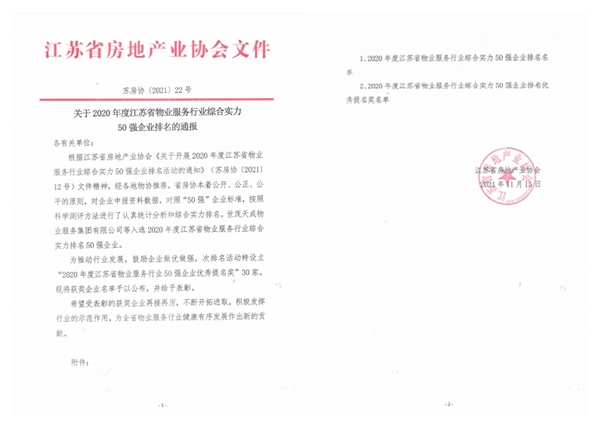 日前,江蘇省房地產(chǎn)業(yè)協(xié)會發(fā)布“2020年度江蘇省物業(yè)服務(wù)行業(yè)綜合實(shí)力50強(qiáng)企業(yè)排名”名單,鹽城市東方物業(yè)管理有限公司榜上有名。