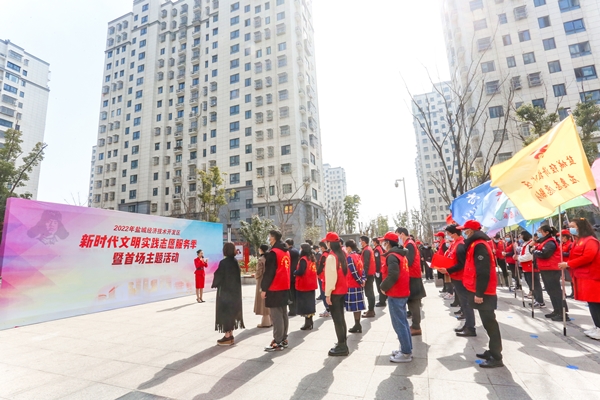 在第59個(gè)學(xué)雷鋒紀(jì)念日來(lái)臨之際,為弘揚(yáng)和實(shí)踐雷鋒精神,進(jìn)一步傳播志愿服務(wù)理念,34日上午,鹽城經(jīng)濟(jì)技術(shù)開(kāi)發(fā)區(qū)新文明實(shí)踐志愿服務(wù)季活動(dòng)在悅欣花園中心廣場(chǎng)正式啟動(dòng)。鹽城東方集團(tuán)組織的“幸福鄰里,便民助民”志愿服務(wù)活動(dòng),作為區(qū)志愿服務(wù)季首場(chǎng)主題活動(dòng),在悅欣花園小區(qū)開(kāi)展。
