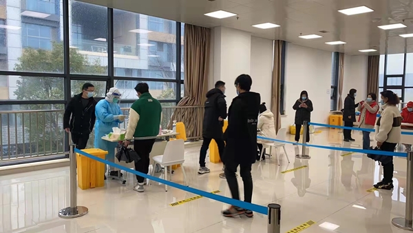 根據(jù)統(tǒng)一決策部署,該集團疫情防控辦公室連續(xù)奮戰(zhàn),統(tǒng)籌方案制定、內(nèi)外聯(lián)絡(luò)、信息發(fā)布、值班值守等工作,扎口匯總統(tǒng)計重點疫區(qū)人員信息,落實集團全員即日起非必要不得離鹽;將防疫關(guān)口遷移至傳達室和地庫道閘,設(shè)置專人查驗進出人員的“兩碼一溫一核酸”和口罩佩戴情況,筑牢阻隔疫情輸入的“防火墻”;抽調(diào)300余名員工脫產(chǎn)加入全區(qū)志愿者、網(wǎng)格員隊伍,發(fā)揮精兵強將作用,直抵一線同心抗“疫”。