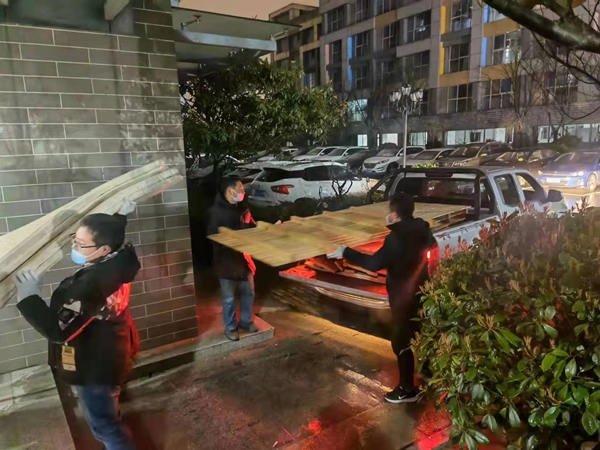 “爸媽你們先睡吧,我還在社區(qū)忙著”“我晚上不回家了,你照顧好孩子”,夜深了,不時聽到突擊隊志愿者來自家人的問候。經(jīng)過十多個小時的忙碌,大家緊張高效地完成了騰空改造任務,未來科技城和韓國社區(qū)總計安裝床位167個,重新布置宿舍106間,騰空集中隔離點韓國社區(qū)D幢房源166間,騰空居家觀察點亞朵酒店房源153間,并加班加點完成了425間衛(wèi)生保潔和房間檢修等工作。