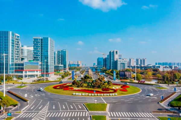 初冬正午,暖意融融。從新都路與希望大道交匯處交通環(huán)島往東看,在“如意牡丹”綠雕和中韓雙語的“中韓(鹽城)產(chǎn)業(yè)園”立體字掩映下,不遠(yuǎn)處的未來科技城“科技藍(lán)”群樓愈發(fā)顯得熠熠生輝。