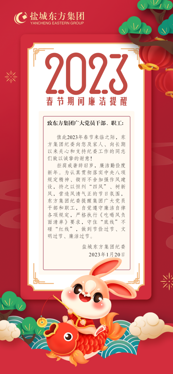 年關(guān)亦是“廉關(guān)” 過節(jié)不能“失節(jié)”丨鹽城東方集團(tuán)紀(jì)委新春“廉”祝福請(qǐng)查收