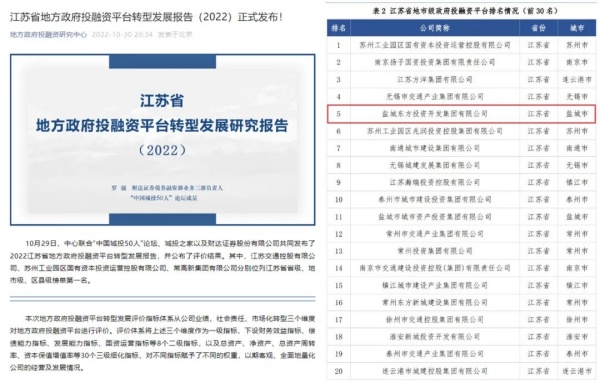 2022年,鹽城東方集團在區(qū)黨工委、管委會的正確領導下,超額完成全年目標任務,在地方政府投融資研究中心發(fā)布的《江蘇省地方政府投融資平臺轉型發(fā)展報告(2022)》中,位列地市級投融資平臺第五位,開創(chuàng)了高質量發(fā)展新局面。