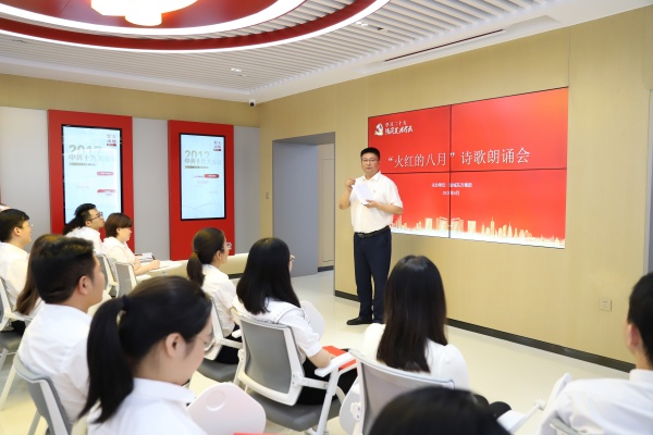 8月3日上午,鹽城東方集團黨委在東方黨建館舉辦了“強國復興有我”經典詩歌朗誦會。集團黨委委員、副總經理吳將出席活動,集團40余名黨員及干部職工參加此次活動。