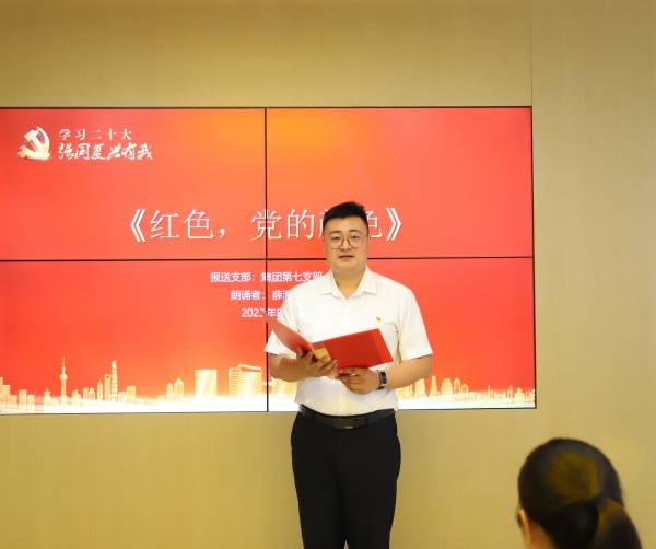 本次詩歌朗誦會以經典詩歌作品為主要表演內容,表演者來自集團18個黨支部推選的11支隊伍。整個朗誦現(xiàn)場氣氛熱烈、激情昂揚,《黨旗頌》《永遠跟黨走》《親愛的母親,偉大的黨》《我們愛你啊,中國》等11篇紅色經典篇目,在大家飽含深情地誦讀中精彩呈現(xiàn)。一句句鏗鏘有力的話語、一段段慷慨激昂的分享,都抒發(fā)著集團青年熱愛黨、心向黨的赤誠之心,表達了對祖國繁榮昌盛的美好展望,勾勒出集團青年員工堅守初心、奮力追夢的精神風貌。
