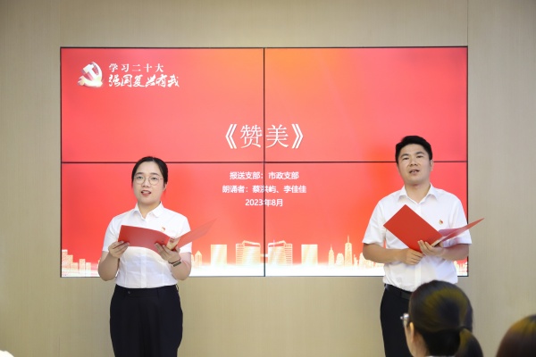 活動現(xiàn)場,代表鹽城經開區(qū)參加全市“貫徹二十大 奮進新征程”主題宣講比賽并榮獲“二等獎”的集團青年宣講組合周毅、張勇為大家?guī)砹酥黝}宣講《致敬新時代、奮進新征程》,宣講聲情并茂、深入人心,讓大家在誦讀聲中感受新時代的脈搏,在傾聽中辨別新征程的方向,著力激發(fā)青年員工在奮力推進中國式現(xiàn)代化新征程上的使命任務與責任擔當!