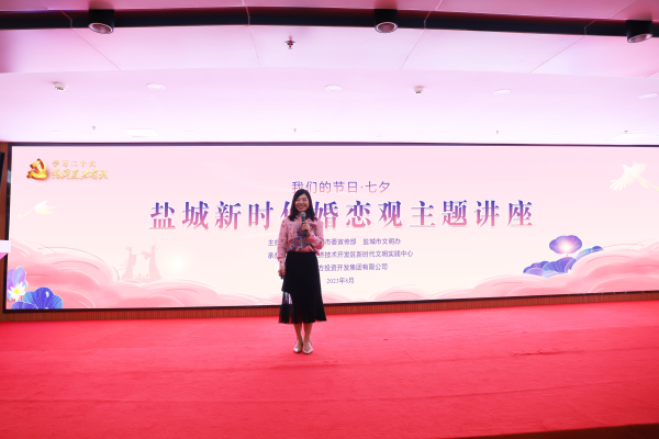 為弘揚(yáng)移風(fēng)易俗的時(shí)代文明新風(fēng),引導(dǎo)廣大職工樹立文明、健康、理性的婚戀觀,提高心理健康水平和發(fā)展自我的能力,8月18日下午,由市委宣傳部、市文明辦主辦,區(qū)新時(shí)代文明實(shí)踐中心、鹽城東方集團(tuán)承辦的“緣滿七夕 幸福同行”新時(shí)代婚戀觀主題講座在未來科技城A1A2樓4樓會議室開講,集團(tuán)黨委委員、副總經(jīng)理吳將出席活動,區(qū)內(nèi)市級以上文明單位代表及集團(tuán)職工120余人聆聽講座。