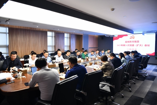 今天,鹽城東方集團在集團七樓1號會議室召開黨委(擴大)會議,集團黨委書記、董事長、總經(jīng)理王旭東主持會議并講話。集團黨委領(lǐng)導班子成員出席會議,集團總會計師列席會議,中層以上人員、子公司經(jīng)營層負責人參加會議。