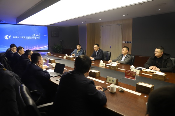 1月11日,建設銀行江蘇省分行投行部總經理周長富到鹽城東方集團考察交流,集團黨委書記、董事長、總經理王旭東在七樓1號會議室熱情接待了周長富一行,雙方就深入開展合作進行了充分交流。建設銀行鹽城分行副行長季震海,東方集團總會計師聶偉虎會見時在座。