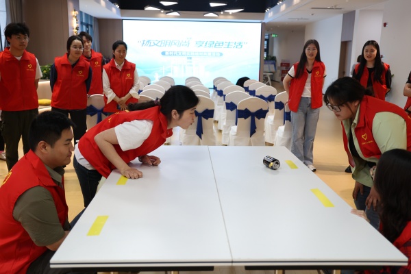 為增加活動的趣味性、互動性,現(xiàn)場還舉辦了兩場環(huán)保主題小游戲——“環(huán)保易拉罐大作戰(zhàn)”“垃圾分類大作戰(zhàn)”。志愿者們通過趣味游戲?qū)W習、踐行環(huán)保知識,強化了綠色環(huán)保理念。
