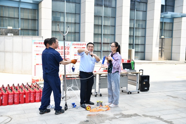 在集團(tuán)一樓集團(tuán)微型消防站,消防員對(duì)消防栓、消防水帶的使用進(jìn)行了現(xiàn)場(chǎng)操作演示,熟練、專業(yè)的操作獲得大家的陣陣掌聲。