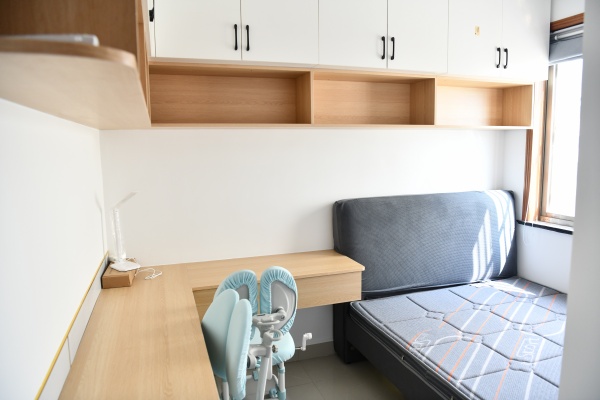 白色的墻壁、藍(lán)色的窗簾、潔凈的地板、舒適的大床、寬敞的衣柜、多功能的書桌、觸碰式的臺燈……“好漂亮啊!我終于擁有自己的房間了!”據(jù)了解,在“夢想小屋”改造期間,步鳳鎮(zhèn)的碩碩(化名)去舅舅家暫住了一段時(shí)間,當(dāng)他回到家第一次看到屬于自己的煥然一新的“夢想小屋”時(shí),激動得差點(diǎn)哭了。碩碩一再表示,自己要更加努力學(xué)習(xí),回報(bào)叔叔阿姨們的關(guān)愛,將來成為對社會有用的人,也去點(diǎn)亮別人的夢想。