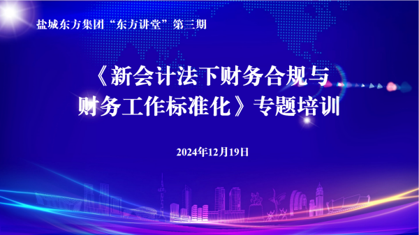 鹽城東方集團(tuán)“東方講堂”第三期——《新會(huì)計(jì)法下財(cái)務(wù)合規(guī)與財(cái)務(wù)工作標(biāo)準(zhǔn)化》專題培訓(xùn)