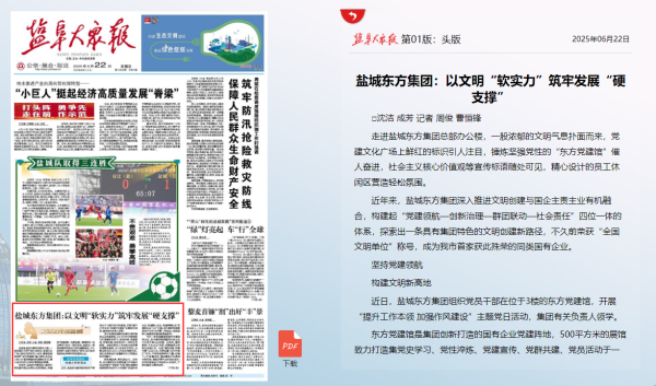 鹽阜大眾報濃情點贊:鹽城東方集團喜獲“全國文明單位”殊榮