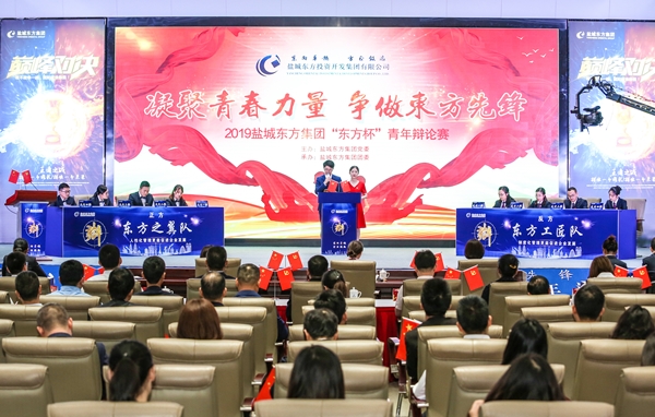 為紀(jì)念中國(guó)共產(chǎn)主義青年團(tuán)成立97周年和五四運(yùn)動(dòng)100周年,5月30日下午,由鹽城東方集團(tuán)黨委主辦、集團(tuán)團(tuán)委承辦的2019年“東方杯”青年辯論賽決賽在鹽城國(guó)際會(huì)展中心舉辦。集團(tuán)黨委書(shū)記、董事長(zhǎng)張振國(guó)作了熱情洋溢的致辭。集團(tuán)領(lǐng)導(dǎo)吳將、王成林、王建旭、華小軍出席比賽。區(qū)團(tuán)工委專(zhuān)職副書(shū)記蘇茜茜,區(qū)團(tuán)工委委員季亞婷,江蘇銀行開(kāi)發(fā)區(qū)支行黨委書(shū)記、行長(zhǎng)史雪峰,南京銀行鹽城分行業(yè)務(wù)拓展二部總經(jīng)理嚴(yán)安,江蘇世紀(jì)新城公司綜合部部長(zhǎng)董正霞、團(tuán)委書(shū)記叢浩等嘉賓受邀蒞臨現(xiàn)場(chǎng)。經(jīng)過(guò)一個(gè)多小時(shí)的激烈角逐,東方之翼隊(duì)以?xún)?yōu)異的辯才拔得頭籌,東方工匠隊(duì)獲得亞軍。