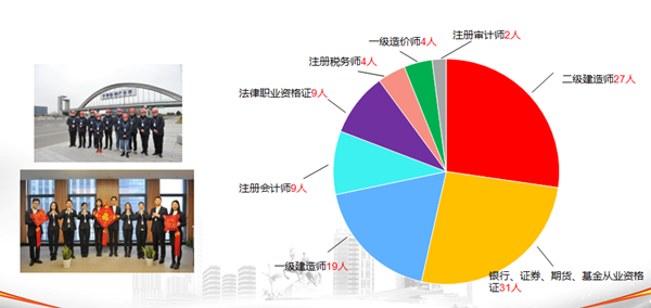 突破地處蘇北的區(qū)位劣勢(shì),瞄準(zhǔn)“985、211”相關(guān)知名高校,以美好的發(fā)展前景吸引重慶大學(xué)、武漢大學(xué)、蘭州大學(xué)等名校16位人才加盟;立足專業(yè)對(duì)口、實(shí)用通用原則,公開(kāi)選聘東南大學(xué)、對(duì)外經(jīng)貿(mào)大學(xué)、河海大學(xué)、蘇州大學(xué)等知名高校的工程建設(shè)、招商引資、市場(chǎng)分析、對(duì)外投資、財(cái)務(wù)管理、風(fēng)險(xiǎn)防控等方面29位高技能人才。目前,集團(tuán)擁有注冊(cè)會(huì)計(jì)師9名、注冊(cè)稅務(wù)師4人、注冊(cè)審計(jì)師2人,一級(jí)造價(jià)師4人、一級(jí)建造師19人、二級(jí)建造師27人,擁有銀行、證券、期貨、基金等從業(yè)資格證31人,持有法律職業(yè)資格證9人。
