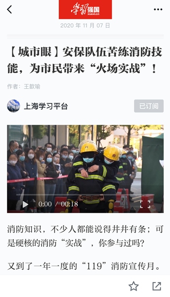 117日,《學(xué)習(xí)強(qiáng)國(guó)》客戶(hù)端上海學(xué)習(xí)平臺(tái)以“安保隊(duì)伍苦練消防技能,為市民帶來(lái)‘火場(chǎng)實(shí)戰(zhàn)’”為題,宣傳鹽城東方集團(tuán)上海公司燕舞保利綠地廣場(chǎng)項(xiàng)目舉辦消防應(yīng)急演練活動(dòng)。據(jù)了解,燕舞保利綠地廣場(chǎng)被上海市政府推選為“消防工作典型優(yōu)秀單位”。